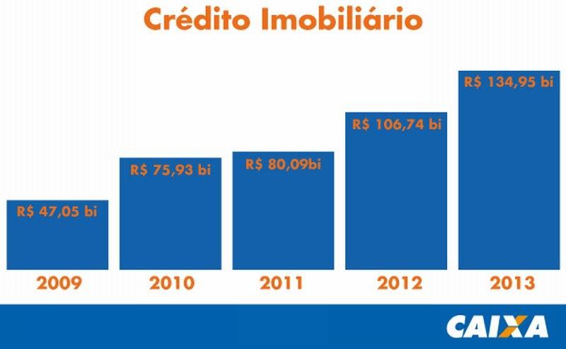 A Caixa Econômica Federal atingiu, em 2013, R$ 134,9 bilhões em contratações do crédito imobiliário. O volume ultrapassou a previsão de R$ 130 bilhões para o ano.