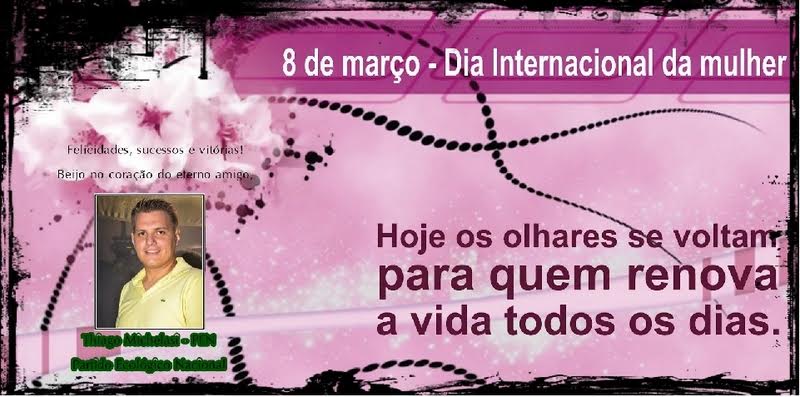 Desejo a todas as mulheres do Brasil, de modo especial as cinco principais mulheres de minha vida, minha mãe Luciléia Slompo Michelasi, minha irmã Juliana Michelasi Rigotto, Minha Avó Vanda Michelasi, Minhas Tias Carina Roberto Michelasi Rodrigues e Silmara Slompo Michelasi Valim, muita paz, bênçãos, vitórias e conquistas.