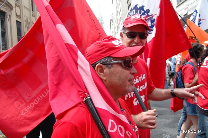 Gente. Muita gente. Cerca de 40 mil trabalhadores e trabalhadoras ocuparam as ruas do centro da capital paulista na quarta-feira, 9. Gente do Rio de Janeiro, Paraná, Goiás e de outros Estados. Gente de São Paulo e do interior, sendo cinco ônibus de trabalhadores de Piracicaba – um deles formado por diretores e assessores do SINDBAN (Sindicato dos Bancários de Piracicaba). A concentração começou na Praça da Sé, palco de tantas manifestações populares e seguiu por importantes ruas e avenidas como a Brigadeiro Luiz Antonio, Avenida Paulista até o Museu de Arte de São Paulo.