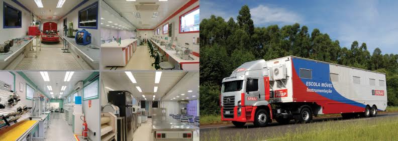 Segundo informações do site do SENAI-SP, as Escolas Móveis do Sistema Indústria são verdadeiras salas de aulas sobre rodas, com toda infraestrutura e qualidade proporcionadas por um conjunto de equipamentos, materiais e mobiliário acondicionados no interior de um semirreboque (caminhão), necessitando apenas de local adequado para manobra e estacionamento.