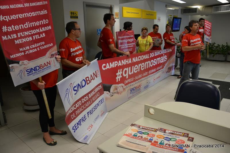 A Federação Nacional dos Bancos – FENABAN apresentou ao Comando Nacional dos Bancários índice de reajuste de 7% para salários e vales e 7,5% para o piso. Além de aumento real maior e valorização, a categoria quer fim das demissões, da pressão por metas, sobrecarga de trabalho, mais segurança e igualdade de oportunidades na carreira. Se não, pode parar a partir do dia 30.