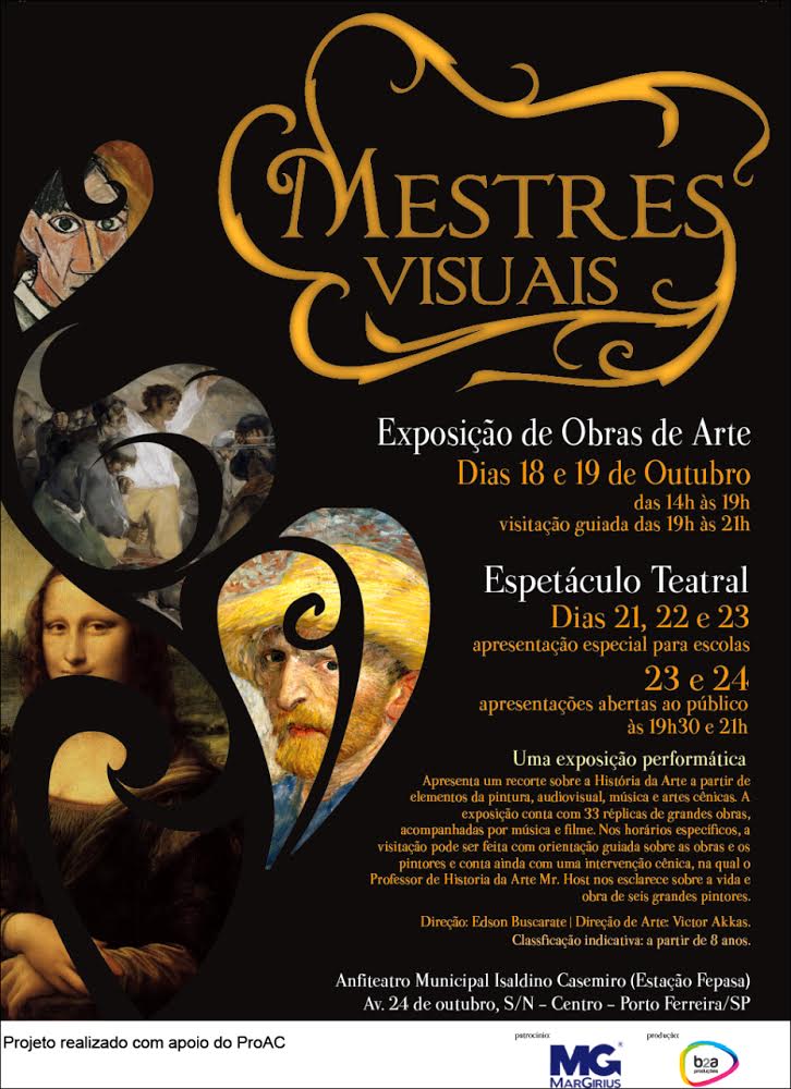 A MarGirius estará promovendo mais um projeto cultural, o qual dará a população ferreirense a oportunidade de conhecer grandes obras de arte de renomados pintores. O projeto é composto por exposições e apresentações de espetáculo teatral, todos gratuitos.