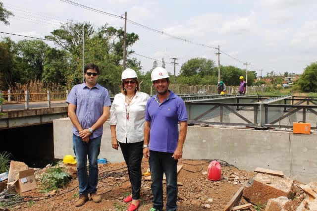 A prefeita Renata Braga e o vereador Alessandro Rossi Bertazzi, o Dentinho (PSDB), vistoriaram as obras na tarde de terça-feira (21/10) e elogiaram o serviço. “Está ficando muito bom. E é bom lembrar que esta nova ponte é a parte de maior custo do projeto”, comentou Renata Braga.