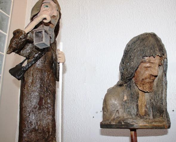 No total, oito esculturas estão em exposição. Os materiais utilizados com a mistura de areia, pó de serra, madeira, coco da Bahia e cola são as bases para criação de figuras que impressionam.