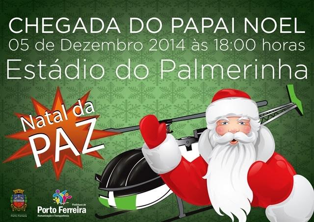 Os Departamentos da Prefeitura envolvidos nos preparativos para o Natal da Paz anunciaram esta semana que o evento da chegada do Papai Noel está marcado para o próximo dia 5 de dezembro (sexta-feira), às 18 horas, no estádio da Sociedade Esportiva Palmeirinha, na Vila Maria.