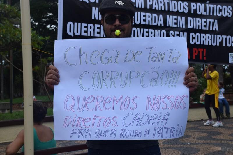 Um pequeno grupo de pessoas se concentrou na Praça Cornélio Procópio (da Matriz), aparentemente sem comando único, dispondo de diversas faixas e cartazes, manifestando-se contrariamente ao governo e ao PT.