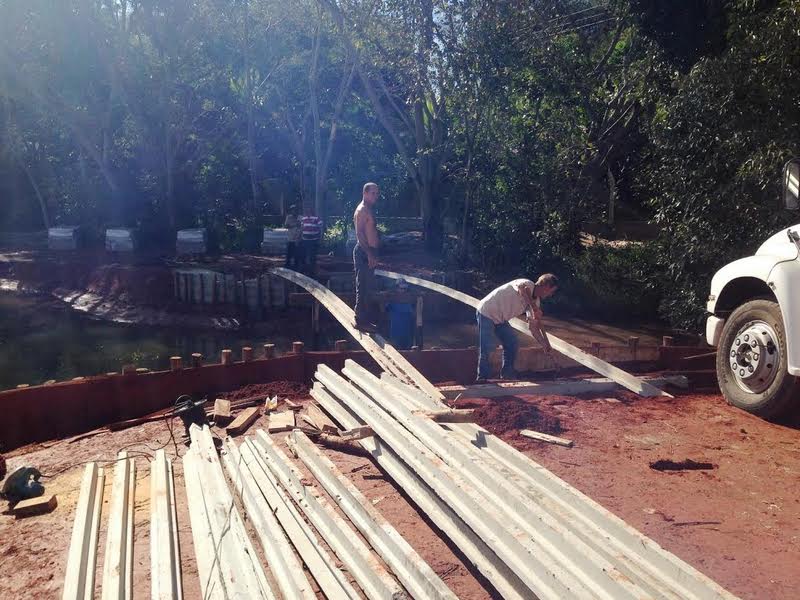 No último sábado, dia 16, teve início a construção de uma ponte, que será parte integrante da nova pista de caminhada do Clube de Campo das Figueiras.