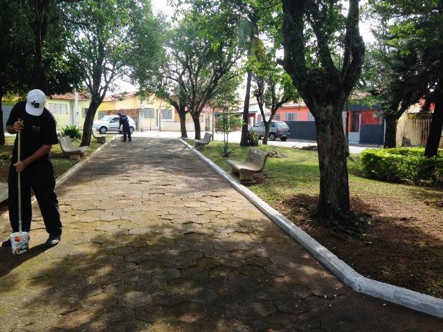 A praça Mariano Sanches, na Vila Salgueiro, também foi outro local que recebeu limpeza e manutenção. Além de toda jardinagem – corte de grama, poda de árvores, etc. –, a praça também teve guias e muretas pintadas.