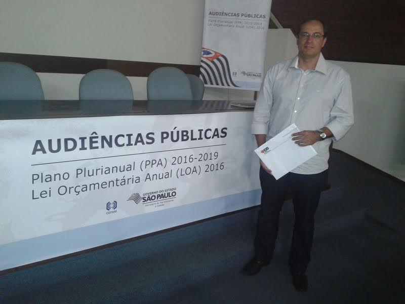 A secretaria de Planejamento e Gestão do Estado de São Paulo realizou, em São Carlos, no dia 29/05, uma audiência pública para debate da Lei Orçamentária Anual (LOA 2016) e elaboração do Plano Plurianual (PPA 2016-2019). O evento é parte de uma agenda que deve percorrer todas as Regiões Administrativas (RAs), Aglomerados Urbanos e Regiões Metropolitanas (RMs) do Estado de São Paulo e tem como objetivo identificar, junto à população, os projetos considerados prioritários para os paulistas, norteando a destinação dos recursos públicos nos próximos anos (LOA 2016 e PPA 2016-2019).
