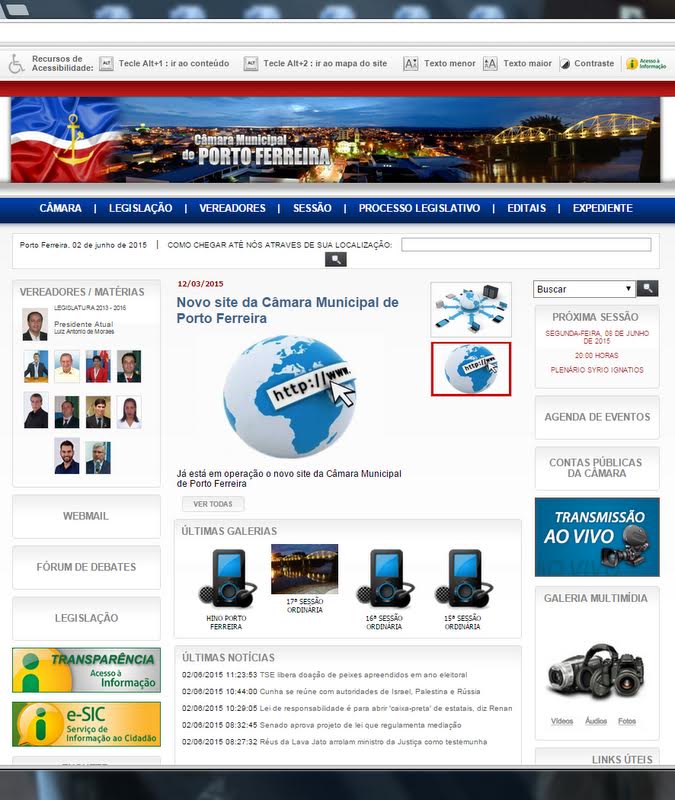 Já está em operação o novo site da Câmara Municipal de Porto Ferreira. Agora sob responsabilidade da empresa WEBLINE SISTEMAS, o serviço está muito mais dinâmico e abrangente. No site todos os assuntos ligados ao Legislativo de Porto Ferreira serão encontrados de forma detalhada, inclusive os fatos históricos e trabalhos dos vereadores. “Estou muito satisfeito pelo serviço ser cada vez mais procurado pela população. É uma demonstração de interesse do povo pela Câmara Municipal de Porto Ferreira”, disse o presidente Luiz Antonio de Moraes, o Maguila.