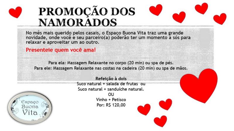 Promoção Dia dos Namorados no Espaço Buona Vita