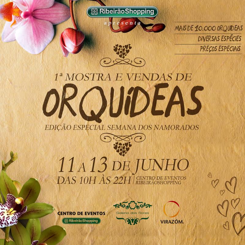 De 11 a 13 de junho, das 10 às 22 horas, o Centro de Eventos do RibeirãoShopping ficará mais perfumado e florido durante a 1ª Mostra e Venda de Orquídeas. Idealizada e realizada pela Virazóm e Galeria das Flores, a mostra será um momento especial para os apreciadores da flor.