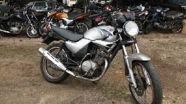 A motocicleta do casal, uma Yamaha 125 cor prata, foi recolhida ao pátio.