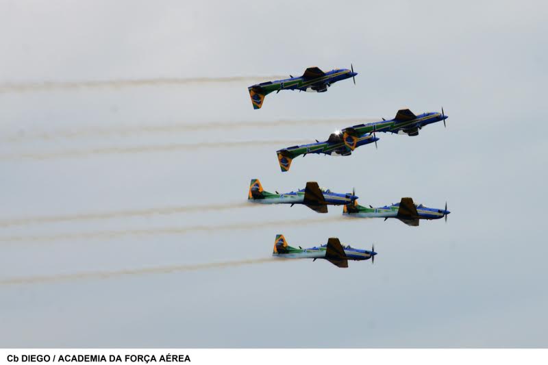 A Esquadrilha da Fumaça realizou, na manhã desta sexta-feira (03/07), sua primeira apresentação após a substituição da aeronave T-27 Tucano pelo A-29 Super Tucano. A demonstração aconteceu durante a cerimônia de entrega de espadim aos cadetes do primeiro ano da Academia da Força Aérea (AFA), em Pirassununga (SP).