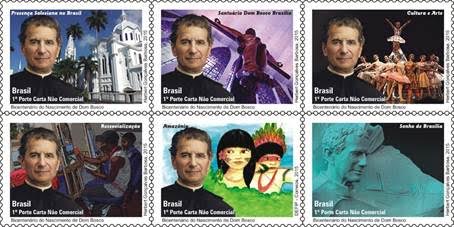 Os selos que compõem esta sextilha destacam a imagem do santo associada a seis aspectos de sua obra: o Santuário Maria Auxiliadora, em Niterói; a parte interna do Santuário Dom Bosco, em Brasília; um grupo de dança das escolas e presenças salesianas; o trabalho relacionado à promoção integral dos jovens; a atuação em relação às culturas e povos indígenas e a estátua de Dom Bosco, que se encontra no interior da Catedral Metropolitana de Brasília, representando o sonho que orientou a fundação da capital do Brasil. A técnica utilizada pelo artista Herbert Gonçalves Barbosa foi a computação gráfica. A tiragem é de 2,4 milhões de selos ao valor de R$ 0,95 cada, que podem ser adquiridos nas agências dos Correios, na loja virtual (www.correios.com.br/correiosonline) e na Central de Vendas a Distância (centralvendas@correios.com.br).
