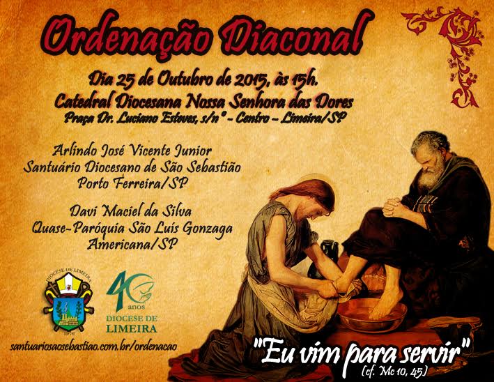 A Celebração Eucarística de Ordenação Diaconal acontecerá na Catedral Diocesana Nossa Senhora das Dores, em Limeira, no dia 25 de Outubro (domingo), às 15 horas.