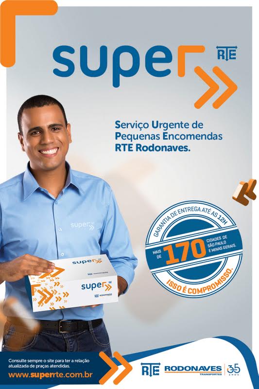 A RTE Rodonaves acaba de dar mais um importante passo. A transportadora lança no mercado, um serviço inédito no segmento de transportes: o Super RTE, que atende mais de 170 cidades dos estados de Minas Gerais e São Paulo e trabalha com a garantia de realizar a entrega das encomendas até às 12h do dia seguinte.