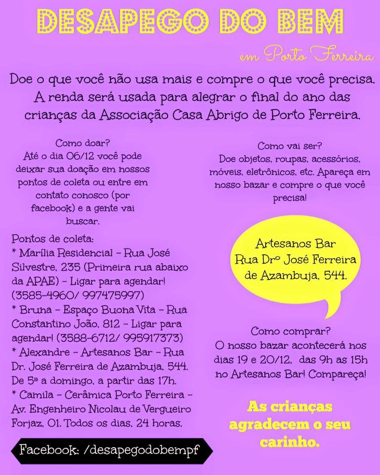 – Doando tudo que não é mais usado na sua casa (até dia 06/12)