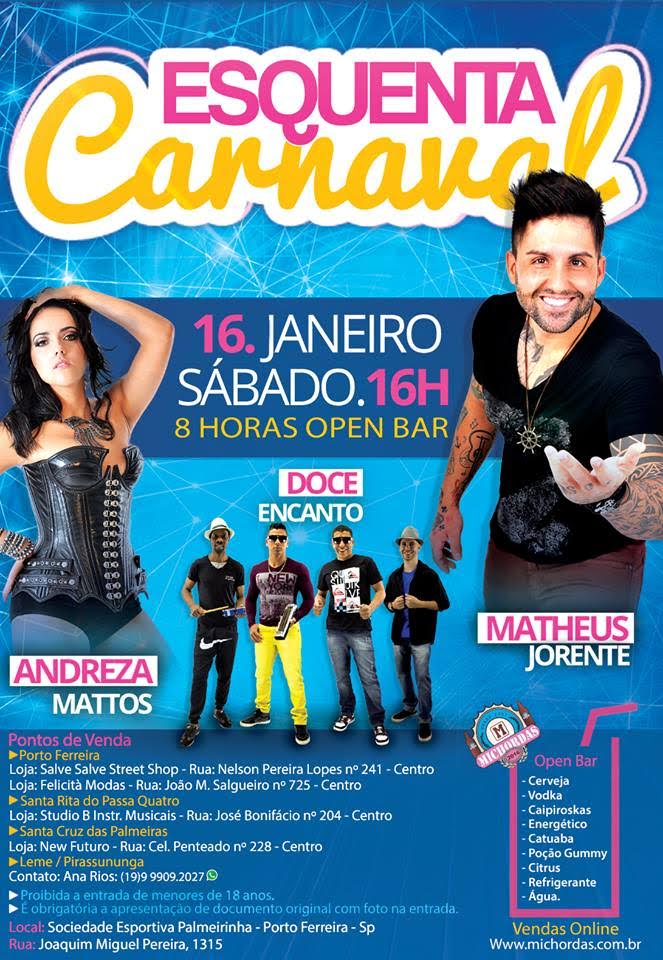 Chegou a Hora!!! Carnaval tá chegando!!! Esquenta Carnaval 2016 – 10 Anos de Michordas com Matheus Jorente ► Atenção: É Expressamente Proibida a Entrada de Menores de 18 anos!