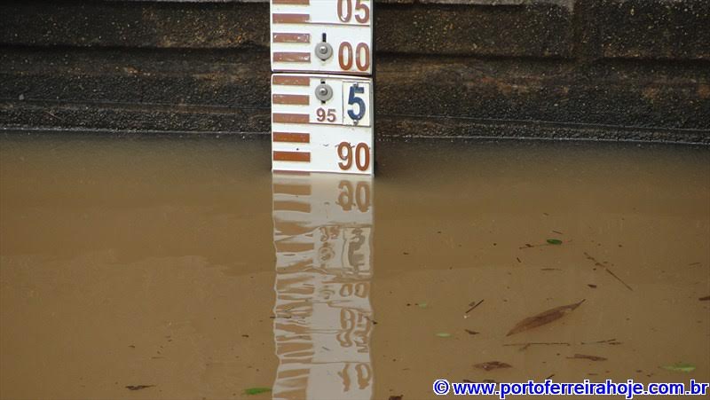 Na sexta-feira (15/01) a régua da Agência Nacional de Águas situada junto à ponte velha marcava 4.70 metros; hoje (16) pela manhã marcava 4,80 metros e à tarde o nível das águas já alcançava 4,90 metros.