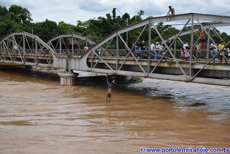 Alguns jovens arriscavam suas vidas saltando na tarde deste domingo (17) saltando da ponte metálica do Rio Mogi Guaçu, em Porto Ferreira, com a régua da ANA – Agência Nacional de Águas indicando 5,20 metros, repetindo o que sempre acontece em períodos de cheia do rio ou no Passeio de Boias