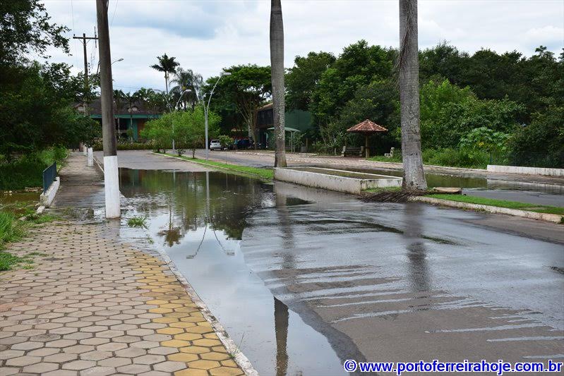 A via foi atingida após a água subir pelas bocas de lobo alí existentes, já que as lagoas que ficam às suas margens estão com os níveis de água bastante elevados.