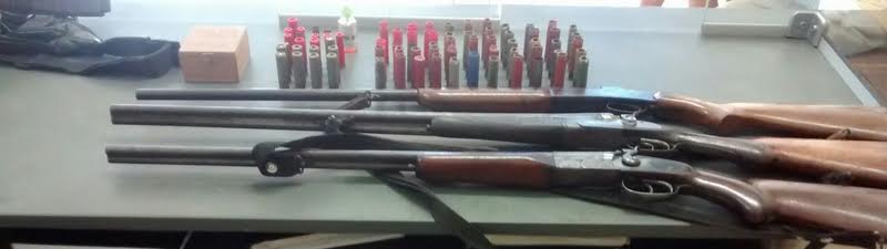 Diante do fato, os policiais deslocaram-se até uma residência localizada em uma fazenda, onde em buscas em um dos quartos encontraram uma espingarda calibre 28 desmontada, que estava próximo a cama; uma espingarda calibre 32 desmontada, que estava em cima do guarda roupas; e uma espingarda calibre 36 desmontada, que estava dentro da gaveta do guarda roupas.