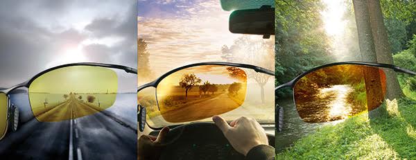 Em tempo nublado, as lentes adquirem uma tonalidade verde/amarela que proporciona alto contraste e reduz a claridade incômoda, atrás do parabrisa, as lentes adquirem uma tonalidade cobre, melhorando o reconhecimento das cores e a percepção de profundidade.