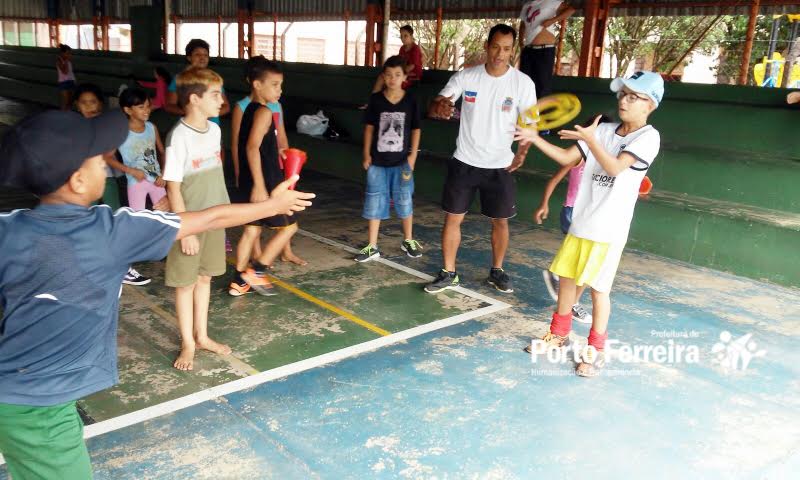 Com o objetivo de proporcionar aos alunos conveniados do programa Segundo Tempo mais uma vivência em uma modalidade esportiva, o coordenador Júlio César Prearo e sua monitora Gláucia Regina desenvolveram uma aula de frisbee.