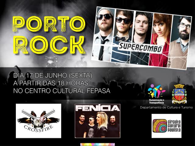 O Circuito Cultural Paulista e a Prefeitura de Porto Ferreira trazem nesta sexta-feira (17/06), a partir das 18 horas, o evento Porto Rock, no Centro Cultural Fepasa. Abertura das bandas Cross Fire e Fenícia, e show final com Supercombo.