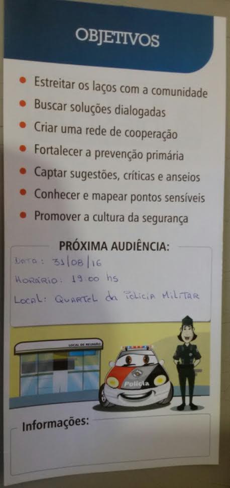 Uma boa oportunidade para que toda a população participe e possa levar as suas sugestões para melhorarmos ainda mais a segurança em nossa cidade.
