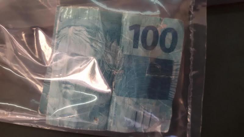Ao chegarem no local para averiguar a denúncia, avistaram os três indivíduos e submetidos a busca pessoal foi localizado com um deles em seu bolso uma nota de R$100 aparentando ser falsa. Indagado os menores houve divergências nas informações.