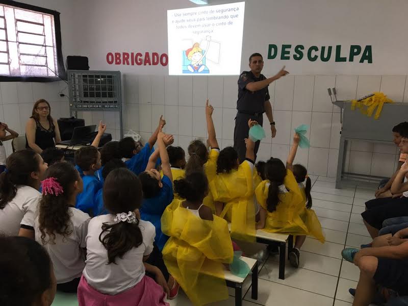 Crianças de várias idades e séries assistiram a palestra ministrada pelo CB PM OSNI LUCIANO MARTINS, que é o instrutor do PROERD (Programa Educacional de Resistência às Drogas e à Violência da Policia Militar), onde receberam orientação sobre os índices de acidentes de trânsito no Brasil e em nossa cidade, assim como assistiram a vídeos educativos.