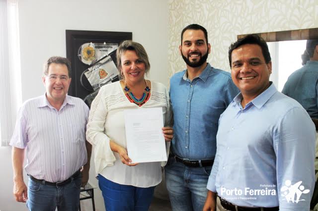A prefeita Renata Braga recebeu na tarde desta terça-feira (25/10) mais uma vez em seu gabinete a visita dos futuros prefeito e vice-prefeito de Porto Ferreira, Rômulo Rippa e Saldanha Leivas Cougo, respectivamente, quando o futuro chefe do Poder Executivo protocolou ofício para iniciar o processo de transição de governo.