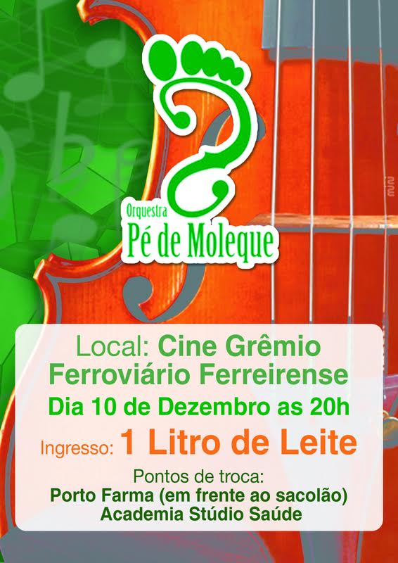 No dia 10 de dezembro, sábado, às 20h, a orquestra Pé de Moleque, de Araras – SP, se apresentará no Cine Grêmio Ferroviário Ferreirense, em Porto Ferreira, para alegrar o natal dos ferreirenses.