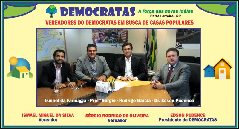 No dia 20 de fevereiro os vereadores do DEMOCRATAS – Professor SÉRGIO (Serjão) e ISMAEL da Farmácia, estiveram em audiência com o Deputado Federal Rodrigo Garcia, atualmente Secretario Estadual de Habitação do Estado de São Paulo, onde reuniram-se com o Presidente do DEMOCRATAS de Porto Ferreira Dr Edson Pudence, no sentido de apresentar proposta para a implementação de um conjunto habitacional para atender a demanda por moradias populares em nosso município. A reunião contou com a anuência e acompanhamento do Prefeito Rômulo Rippa, que demonstrou interesse e empenho na iniciativa dos representantes do DEMOCRATAS de Porto Ferreira. Trata-se de projeto ambicioso e que contará com a participação das três esferas de governos: municipal, estadual e federal.