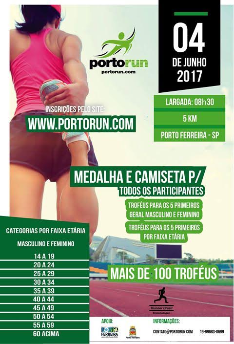 No dia 4 de junho o município de Porto Ferreira receberá atletas de diversas cidades do Estado. Mais de 20 municípios já confirmaram presença na Corrida Porto Run 2017, que tem o apoio da Prefeitura, por meio da Secretaria de Esportes e Lazer.