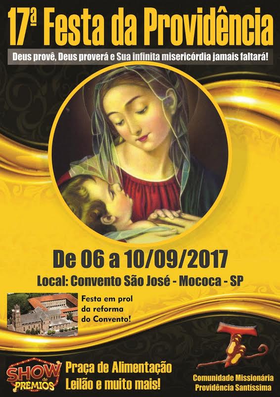 A Comunidade Missionária Providência Santíssima (CMPS) realizará a 17ª Festa da Providência.