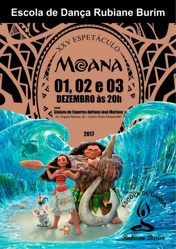 O Espetáculo acontecerá nos dias 01, 02, 03 de dezembro em Porto Ferreira, no Ginásio de Esportes Adriano José Mariano,e é inspirado em filme da Disney, onde uma jovem decide velejar através do Oceano Pacífico, com a ajuda de um semi-deus, em uma viagem que pode mudar a vida de todos…