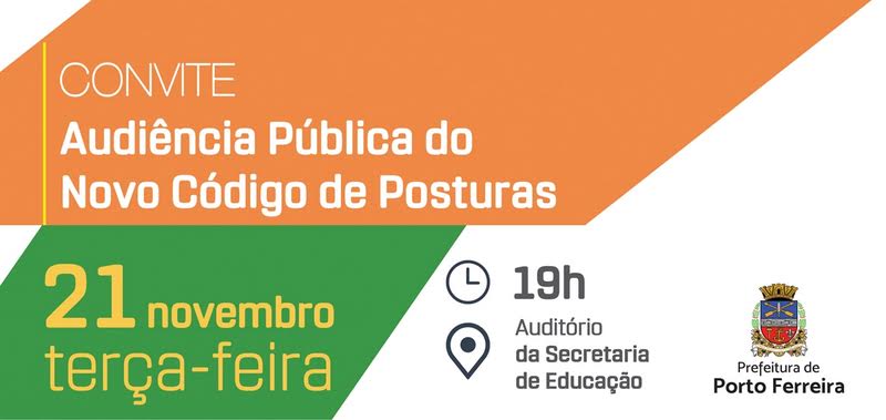 Está marcada para a próxima terça-feira (21/11), às 19 horas, no auditório da Secretaria de Educação, a audiência pública que vai discutir as propostas do novo Código de Posturas do município, uma vez que o atual foi criado há pouco mais de duas décadas e necessitava de uma ampla atualização.
