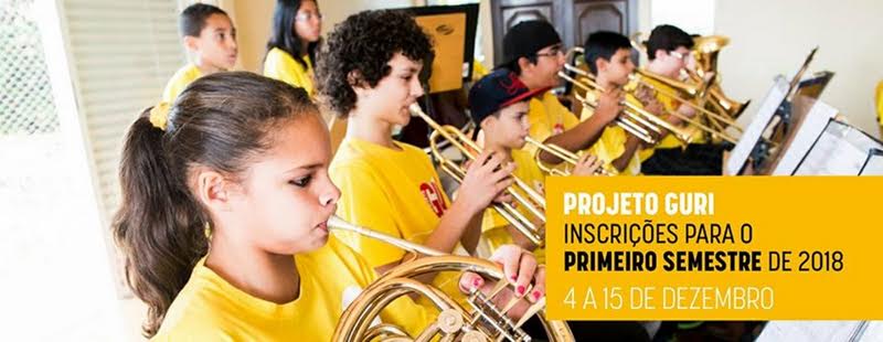 As inscrições do Projeto Guri para o primeiro semestre de 2018 poderão ser feitas no período de 4 a 15 de dezembro.