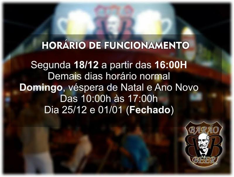Dia 24/12/2017 e 31/12/2017 funcionamento das 10:00 as 17:00