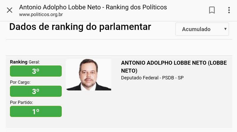 O deputado federal Lobbe Neto esta classificado em terceiro lugar lugar no “Ranking dos Políticos”, um site sem fins lucrativos que visa comparar os políticos de todo o Brasil de acordo com alguns critérios. Na lista estão presentes 593 nomes, todos os senadores e deputados federais do país. Os pontos utilizados para medir a qualidade dos parlamentares são: presença nas sessões, privilégios, processos judiciais, qualidade legislativa, formação acadêmica, filiação partidária e outras pontuações extras.