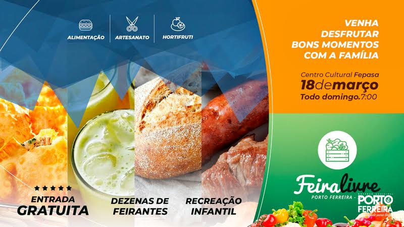 Dezenas de feirantes estarão reunidos neste domingo (18/03), a partir das 7 horas, para receber aqueles que desejam desfrutar bons momentos com toda a família e amigos. Será o primeiro dia de funcionamento da Feira Livre Municipal, que ocorrerá regularmente todos os domingos, no Galpão Permanente de Exposição e Eventos Luiz Antônio Camarotti, no Centro Cultural Fepasa.