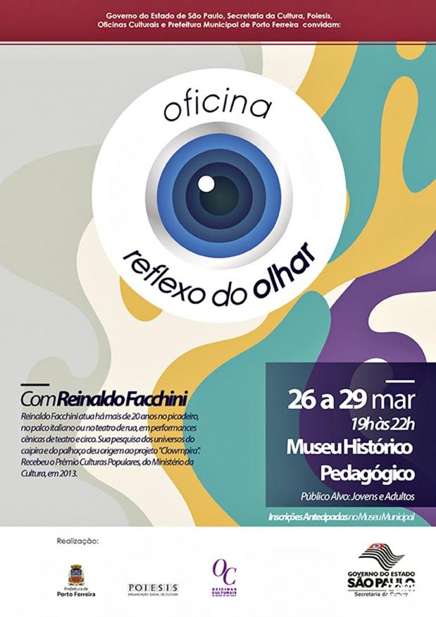 O Museu Histórico e Pedagógico Professor Flávio da Silva Oliveira realiza nos próximos dias 26, 27, 28 e 29 de março, das 19h às 22h, a Oficina Reflexos do Olhar, com coordenação de Reinaldo Facchini.