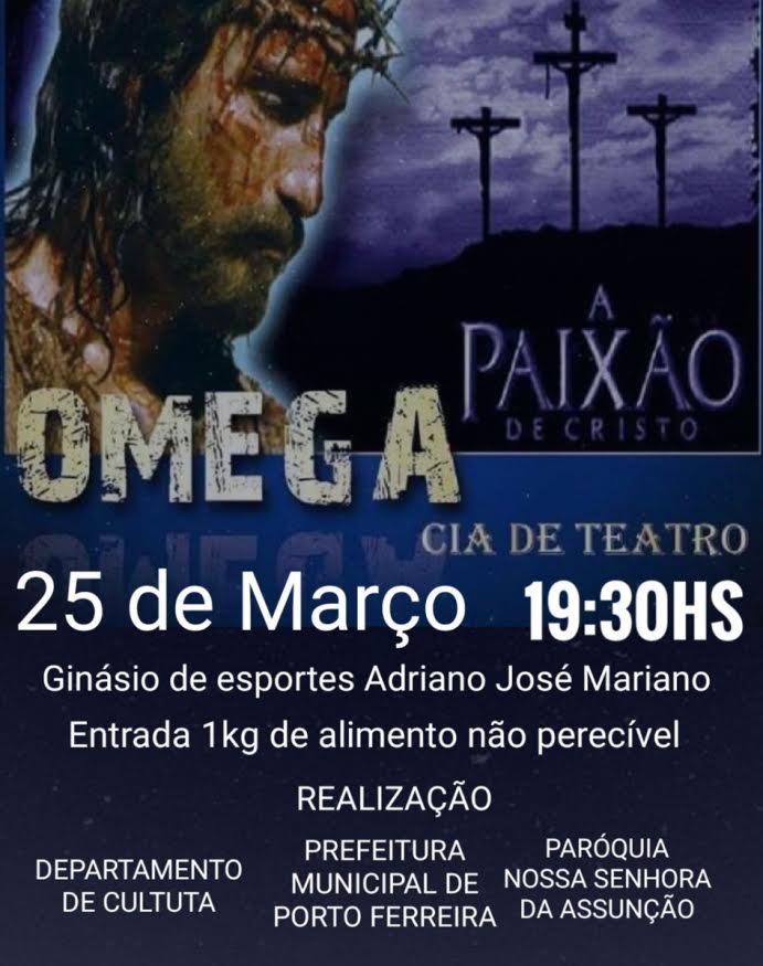 A Ômega Companhia de Teatro vai encenar “A Paixão de Cristo” no domingo (25/03), a partir das 19h30, no Ginásio de Esportes Adriano José Mariano.