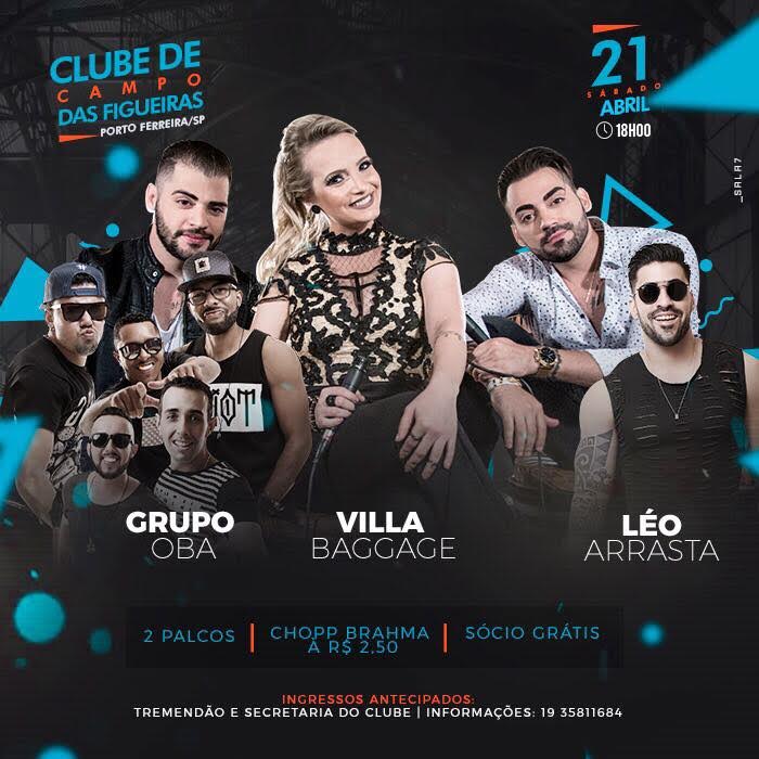 O Clube de Campo das Figueiras traz para Porto Ferreira três atrações no próximo sábado 21 de Abril de 2018.