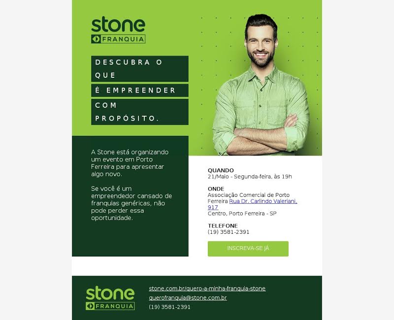 A Stone Franqui está organizando um evento em Porto Ferreira para apresentar algo novo. Algo que você, um empreendedor nato, não pode perder.