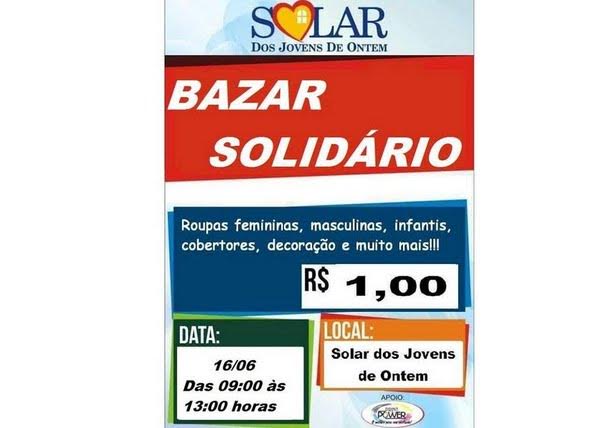 O Solar dos Jovens de Ontem de Porto Ferreira promoverá Bazar Solidário no dia 16 de junho,sábado, das 9h00 às 13h00 na sede do Solar, localizada à rua João Colussi nº 307, Estância dos Granjeiros, em Porto Ferreira – SP, telefone (19) 3581- 2586
