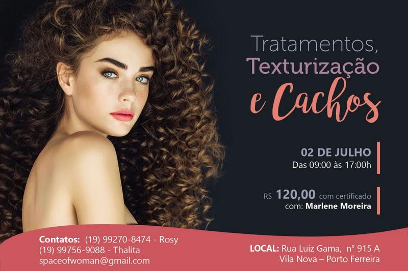 Dia 02 de Julho curso de Tratamentos,Texturização e Cachos das 9:00h as 17:00h na rua Luiz Gama, nº915 A, Vila Nova, Porto Ferreira-SP